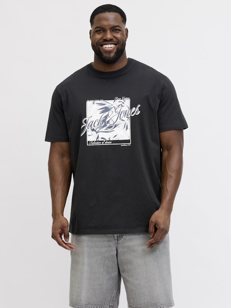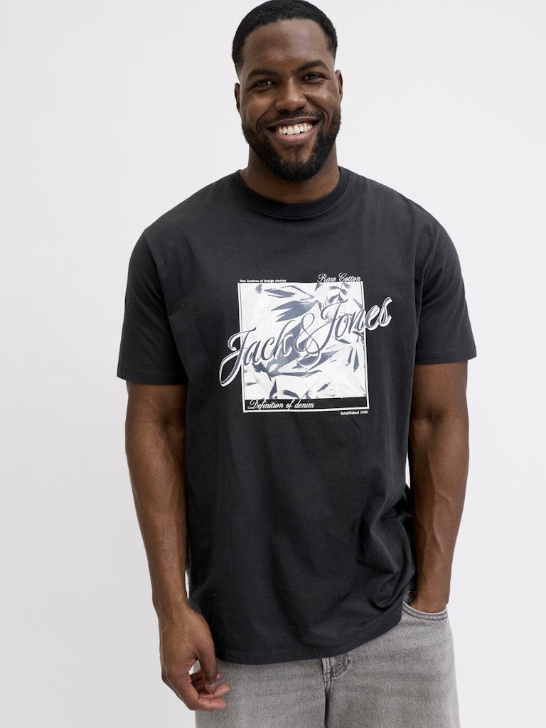 ΜΠΛΟΥΖΑ t shirt ΛΑΙΜΟΚΟΨΗ ΣΤΑΜΠΑ ΥΠΕΡΜΕΓΕΘΟΣ- JACK AND JONES ΧΡΩΜΑ ΜΑΥΡΟ